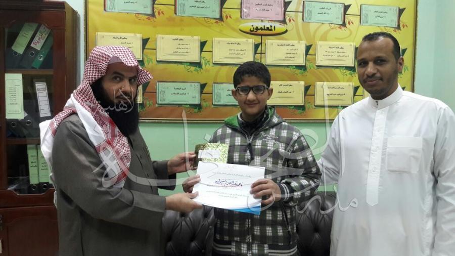 فاز الطالب/ أحمد عبدالعزيز السمران بمتوسطة الصحافة الأهلية بالمركز الأول في مسابقة القران الكريم على مستوى مكتب الرائد (الفرع السادس)