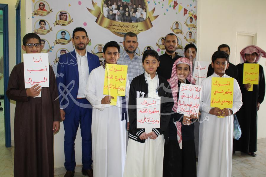 قامت فرقة التوعية الإسلامية بالقسم المتوسط بالتعاون مع المشرف التربوي الأستاذ ياسر قطب بتفيذ حملة السواك تحت شعار "مرضاة للرب مطهرة للفم" ضمن فعاليات البرنامج القيمي المحافظة على صحة الاسنان.