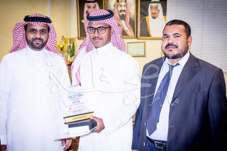 تكريم الطالب / فهد جاسر الجويعد الفائز في مسابقة المهارات الأدبية ( فرع المقالة الأدبية )، بالمركز الثاني على مستوى إدارة تعليم الرياض، حيث تم تكريم الطالب من سعادة الدكتور/ أنور أبو عباة مدير النشاط الطلابي بإدارة تعليم الرياض، وذلك يوم الثلاثاء الموافق 19-3-1440هـ.
