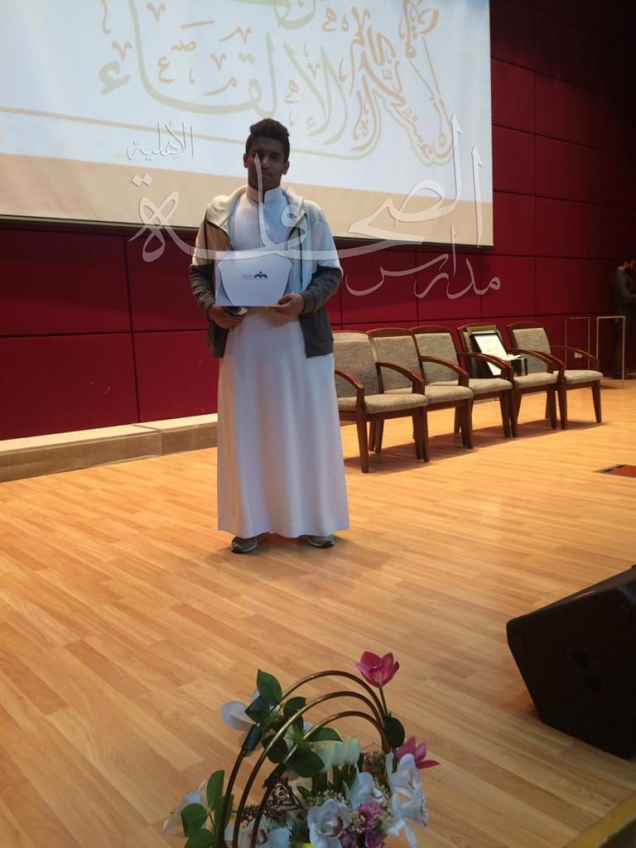 بناء على خطة إدارة النشاط الطلابي تم تكريم الطلاب الفائزين بالمراكز الثلاثة الأولى في مسابقة الإلقاء الفردي على مستوى المكاتب، وذلك يوم الأربعاء الموافق 10-5-1440هـ، والتي تم إقامتها بمدارس المناهج وشرفها بالحضور الدكتور/ أنور أبو عباة- مدير النشاط الطلابي بإدارة تعليم الرياض، وتم تكريم الطالب / نواف على العنزي ثانوية الصحافة الأهلية والحاصل على المركز الثالث في مسابقة فرسان الإلقاء ( الإلقاء الفردي ) على مستوى مكتب تعليم الرائد، وكذلك تم تكريم المعلم / فيصل بشير المشرف على تدريب الطالب.
