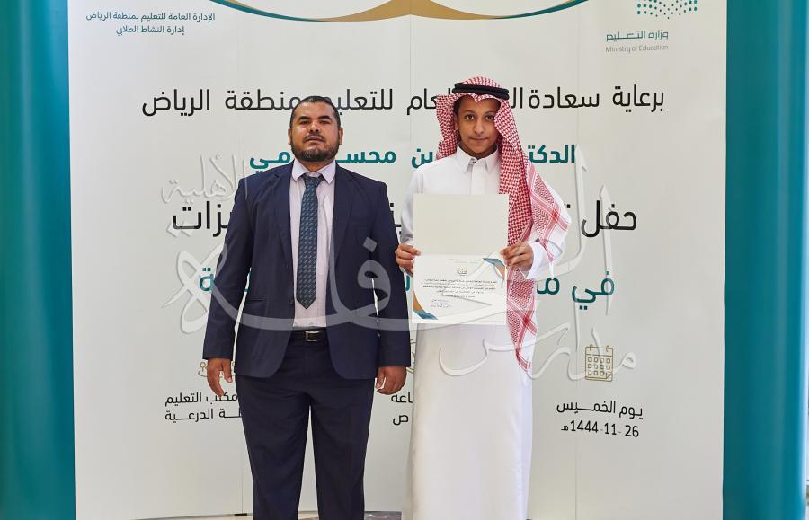 تتقدم إدارة مدرسة ثانوية الصحافة بالرياض بتهنئة ابنها الطالب / هاشم علي الصمداني (الصف الثاني الثانوي ) لتأهله على مستوى المملكة العربية السعودية في مسابقة القصة القصيرة (بأقلامهم ) ودخوله في المنافسة على مستوى الوطن العربي