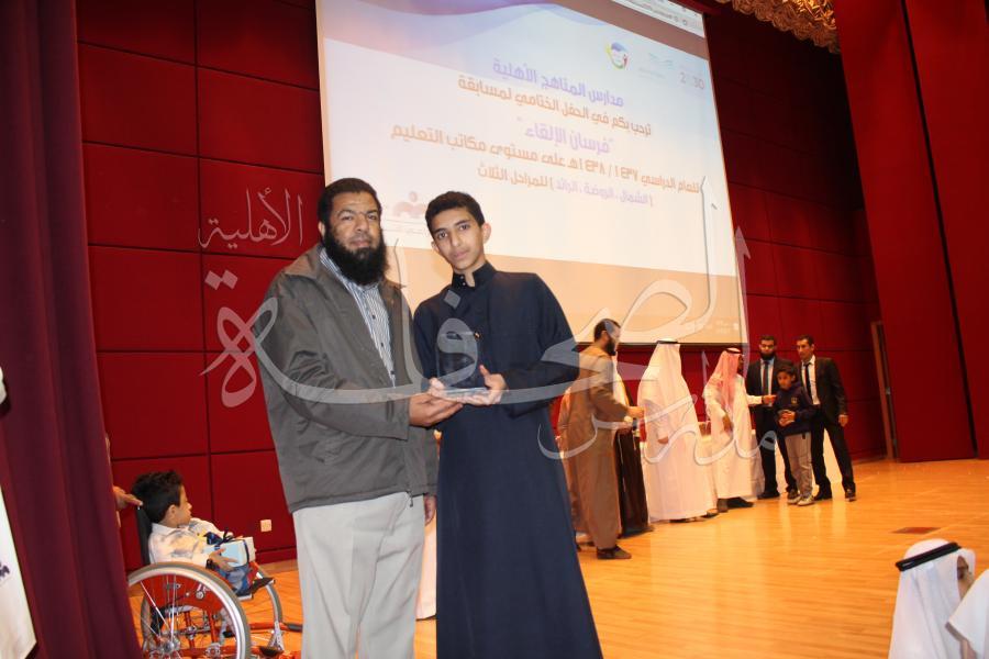 تكريم الطالب الفائز بالمركز الثاني  في مسابقة فرسان الإلقاء على مستوى مكتب التعليم بالرائد