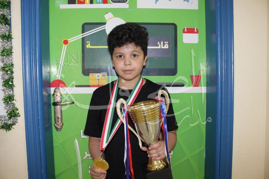 والطالب / ناصر محمد أبو نبوت وحصلت المدرسة على المركز الأول على مستوى مكتب الرائد