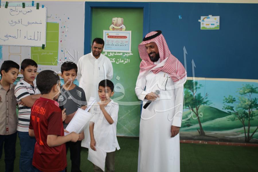ضمن مشروع شخصيتي أقوى تم إجراء لقاء صحفي مع قائد المدرسة لتدريب طلاب الصفوف الأولية على أسس الحوار الصحيحة.