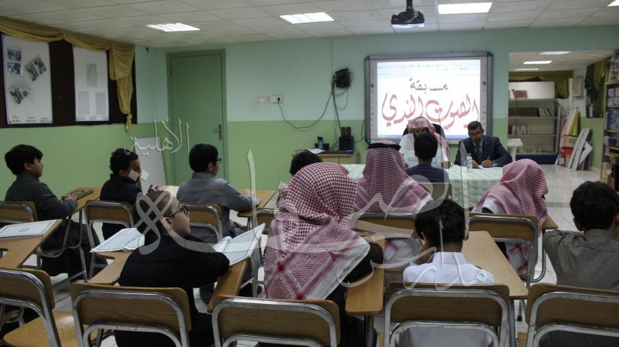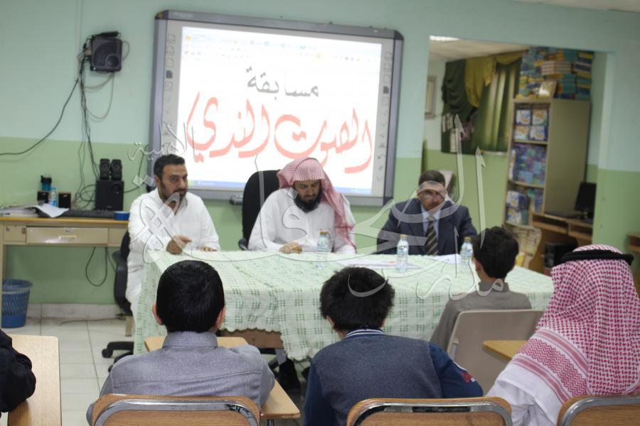 تم إجراء وتنفيذ مسابقة الصوت الندي بين طلاب المرحلة العلوية لاختبار أجمل وأعذب الأصوات في تلاوة وترتيل القرآن الكريم ولبيان فضل أهل القرآن ومنزلة قارئ القرآن وذلك يوم الأربعاء 9-6-1438هـ .