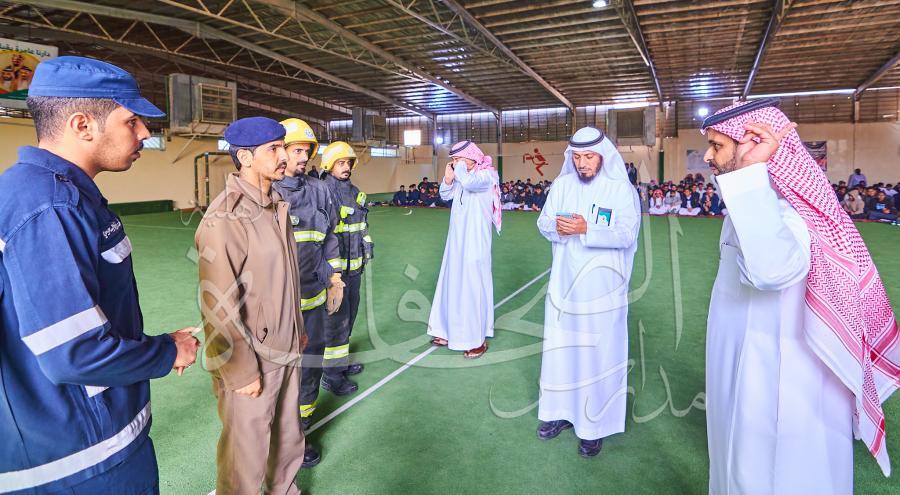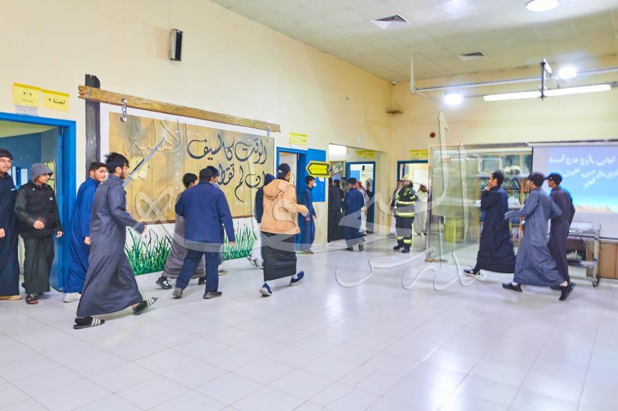 خطة الإخلاء المطبقة في ثانوية الصحافة بإشراف مكتب العارض ومركز الدفاع المدني