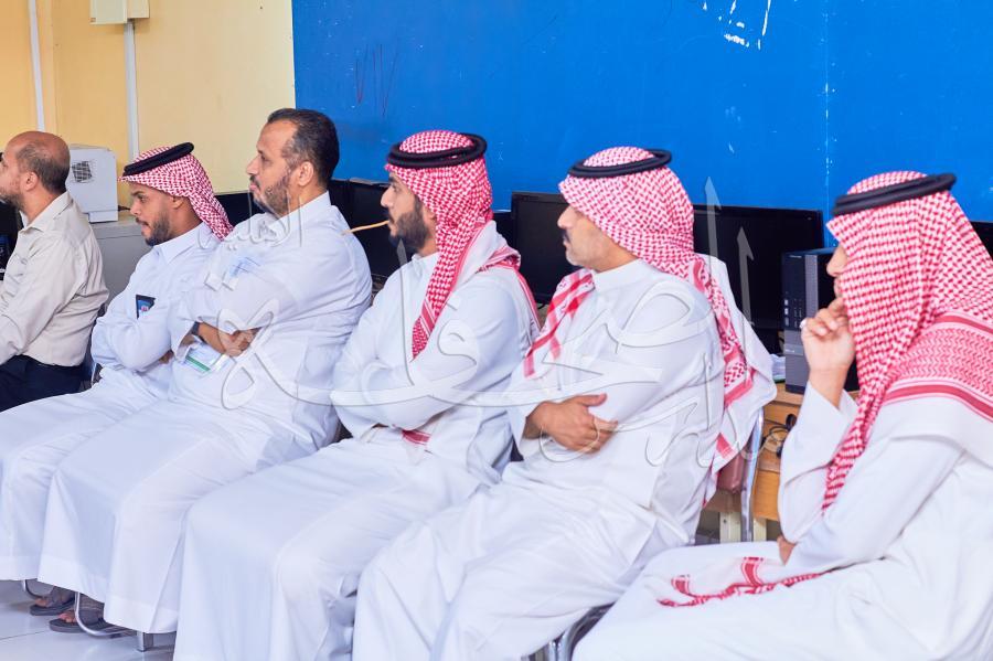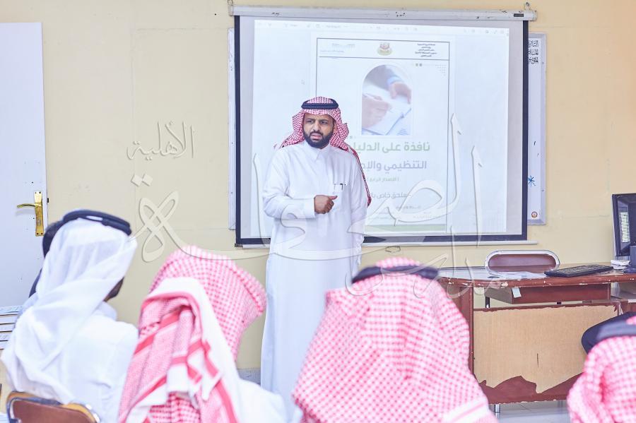 الأستاذ / حسن بن محمد العمري مدير ثانوية الصحافة في افتتاح ورشة العمل ( أساليب توظيف الدليل الإجرائي والتنظيمي )
