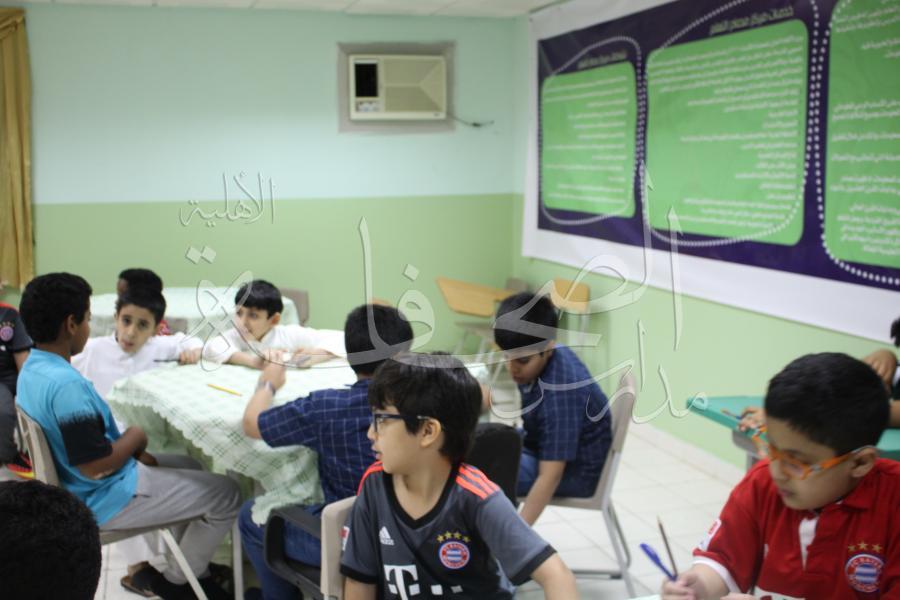 أقامت المدرسة دورة في الخط العربي لطلاب المدرسة في الأسبوع الخامس وكانت ورشة العمل ويوم الثلالثاء الموافق 17-1-1438 وكان المدرب الأستاذ السيد الوزير ومعه الأستاذ ياسرقطب مشرف اللغة العربية